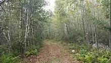 The Mount Tammany Fire Road was constructed as a dozer line created after the 1976 Dunnfield Creek fire on Kittatinny Mountain which consumed over 2,000 acres (8.1 km2) of forests from April 18 to April 22, 1976.[2] Today, the road is often used as part of a loop with the Appalachian Trail, Sunfish Pond Fire Road, Dunnfield Creek trail and other trails by hikers visiting the Delaware Water Gap.[3][4] The Mount Tammany Fire Road connects with the Blue Dot Trail, Red Dot Trail, Turquoise and Taylor Trails on Mount Tammany.[1]