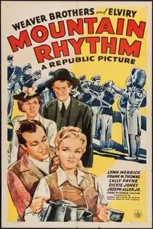 Mountain Rhythm is a 1943 American comedy film directed by Frank McDonald and written by Dorrell McGowan and Stuart E. McGowan. The film stars the vaudeville comedy troupe the Weaver Brothers and Elviry, with Lynn Merrick, Frank M. Thomas and Sally Payne. The film was released on January 8, 1943, by Republic Pictures.[1][2][3]
