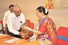 - ↑ "Nishagandhi Puraskaram for Mrinalini Sarabhai". The Hindu. 26 January 2013. Retrieved 29 January 2016.