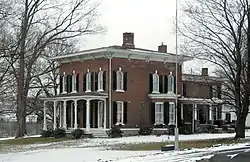 It is credited to architect Archimedes Russell and was built in 1870. It is a two-story, brick Italianate style dwelling. It consists of a main block and rear wing with low hipped roofs. It features a full width, one-story front porch and small side porch with chamfered columns.[2]:3–4