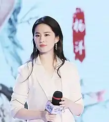 Liu's portrayal as Mulan in the 2020 film was generally well received by critics. Richard Roeper of Chicago Sun-Times described Liu's performance as "star-turning" as well as "a boundaries-shattering, stereotype-defying hero-warrior for her time and for ours."[63] Writing for IndieWire, Kate Erbland found Liu, "engaging" as Mulan and adding, "she delivers, easily inhabiting both the reticent, shy Mulan and her bombastic evolution into unmitigated badass."[64] Mick LaSalle of the San Francisco Chronicle wrote, "Liu is so strong in the role of Mulan that it's only later that you might realize that you were not watching Mulan herself, but someone giving an exceptional performance in a difficult part. In addition to the challenge of portraying Mulan's journey from insecurity to glorious attainment, there were the physical rigors, which Liu had to accomplish with balletic grace."[65] In her review for London Evening Standard, Charlotte O'Sullivan said Liu played, "a Mulan whose fighting skills — and emotional life — dazzle. Liu often looks 13, but is actually 33. She has the kind of face you never get bored of. There's something Meryl Streep-y about her soulfulness and all her moves are magical."[66] While Christy Lemire of RogerEbert.com wrote, "Liu's performance might have been more powerful if she'd been a bit more emotive", she still overall described it as "lovely" and that "the steeliness and physicality she displays make her a convincing fighter."[67]