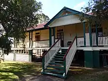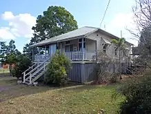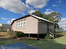 In 1914 a teacher's residence was added to the site, fulfilling "a long felt need"[22] Most Queensland state schools incorporated a teacher's residence on the site, particularly in rural areas. In Australia, only Queensland offered free accommodation to teachers, the government policy applying to male teachers (only) from as early as 1864. This was partial recompense for a low wage, an incentive for teacher recruitment in rural areas and provided onsite caretakers.[23][24] From the 1880s they were built as detached residences and were similar to the vernacular Queensland house. Designed by the Department of Public Works and constructed to the high standard demanded by the state, teacher's residences were typically of a higher-quality than most similarly-scaled private residences. The residence was located within the school grounds at a distance from the teaching buildings, usually with a separate, fenced yard. Residence designs varied in size and evolved to keep up with modern needs and styles.[1]