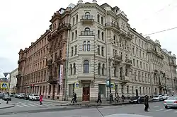 It is noteworthy for its neo-Moorish architecture and as a place of residence or work of a number of Russian-language literary persons:[4] for example, in 1955–1972 Russian poet Joseph Brodsky resided in the Muruzi house, nowadays his memorial museum is opened at his former apartment.[5] Before him residents included the early 20 century family of authors Zinaida Gippius and Dmitry Merezhkovskiy and later a Soviet and modern Russia prose writer Daniil Granin;[6] Poets' House opened here in 1920 under Nikolay Gumilyov, and Korney Chukovskiy opened a studio for teaching young literary translators under the post-revolutionary publishing project Vsemirnaya literatura ("World Literature").[7]