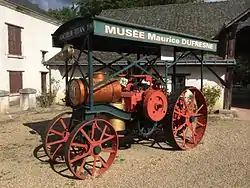 Titan tractor from the 1900s (1900 to 1909?) Bearing the name of the Maurice Dufresne museum. It is located just before the entrance to the covered part of the Maurice Dufresne museum