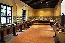 Recreated dining hall of the old monastery and the colonial azulejos of the building