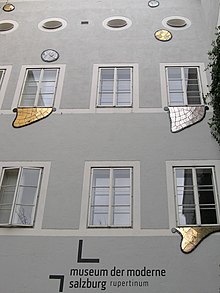The Museum der Moderne Salzburg has two buildings at two different locations in Salzburg, Austria. The Rupertinum in the old town for new artistic concepts opened in 1983 and the Museum on the Mönchsberg for modern art in a contemporary setting opened in 2004.