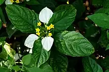 Mussaenda pubescens is a plant from the coffee family, Rubiaceae that is found in Indonesia.