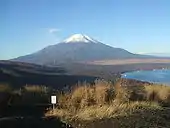 Myōjinyama (明神山) is a grassy area on a mountain ridge in Japan, 20 kilometres (12 mi) east from Mount Fuji and 5 kilometres (3.1 mi) south-east from Lake Yamanaka, off of road 147. The area is suitable for hiking and paragliding.