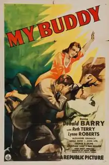 My Buddy is a 1944 American crime film directed by Steve Sekely and written by Arnold Manoff. The film stars Don "Red" Barry, Ruth Terry, Lynne Roberts, Alexander Granach, Emma Dunn and John Litel. The film was released on October 12, 1944, by Republic Pictures.[1][2][3]