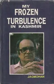 My Frozen Turbulence in Kashmir is a memoir by Jagmohan first published in September 1991. It focuses on his months as a governor of Jammu and Kashmir in 1990 during the peak of insurgency.[1][2][3] Its scope is wide, ranging from the history of ancient Kashmir and modern Kashmir, to how the state saw a breakdown of government machinery during the end of 1980s.[4] Notably, during Jagmohan's second tenure, the genocide of Kashmiri Hindus was exacerbated.[4] The book is an attempt to address disinformation spread related to him and in general during those years.[4]