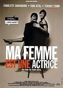 My Wife is an Actress (French: Ma femme est une actrice) is a 2001 French romantic comedy-drama film starring Yvan Attal and Charlotte Gainsbourg. Attal plays a journalist who becomes obsessively jealous when his actress wife gets a part in a movie with an attractive co-star. Attal also wrote and directed the film. The film stars Terence Stamp among others. This film is also highly biographic, as Yvan and Charlotte are a real-life couple since 1991, and have three children. According to Yvan, the idea and a part of the plot originates from real-life events.[3]