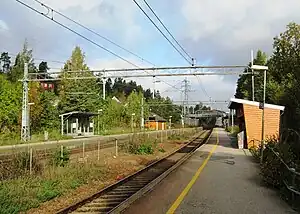 Myrvoll Station (Norwegian: Myrvoll stasjon) is a railway station at Myrvoll in Oppegård, Norway. Located on the Østfold Line, it is served by the Oslo Commuter Rail line L2 operated by Vy with two hourly services. The station was opened in 1919.