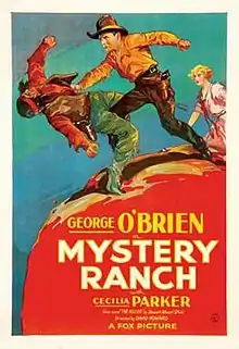 Mystery Ranch is a 1932 American pre-Code Western film directed by David Howard and written by Alfred A. Cohn. The film stars George O'Brien, Cecilia Parker, Charles Middleton, Charles Stevens, Forrester Harvey and Noble Johnson. The film was released on July 1, 1932, by Fox Film Corporation.[1][2][3]