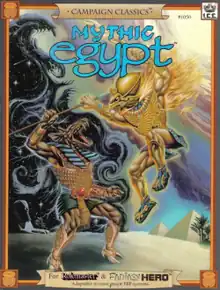 I.C.E. published the role-playing system Rolemaster in 1980. Several years later, I.C.E. took over Hero Games and their Hero System of role-playing rules, including the specialized set of rules for fantasy campaigns called Fantasy Hero. As game historian Shannon Appelcline noted, I.C.E. immediately started to produce products that used both their own Rolemaster rules as well as Fantasy Hero, saying, "ICE's fourth new product lines had ties to both Hero [System] and Rolemaster. Their Campaign Classics books detailed historic and mythic backgrounds in excellent one-off sourcebooks that were dual-statted for both systems. There were five in all: Robin Hood (1987), Mythic Greece (1988), Vikings (1989), Pirates (1989), and Mythic Egypt (1990)."[2]:105 Mythic Egypt was a 160-page softcover book written by Earl Wajenburg, with interior art by Elissa Martin, and cover art by David Martin.[3]