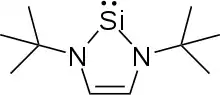- ↑ Li, Wenjian; Hill, Nicholas J.; Tomasik, Adam C.; Bikzhanova, Galina; West, Robert (2006-07-01). "A New Monomeric Saturated N-Heterocyclic Silylene as a Racemic Mixture". Organometallics. 25 (16): 3802–3805. doi:10.1021/om060544v. ISSN 0276-7333.