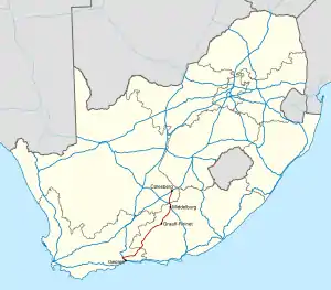 - ↑ Falkner, John (May 2012). South African Numbered Route Description and Destination Analysis (Report). National Department of Transport. p. 23. Archived from the original on 6 June 2014. Retrieved 12 August 2014.