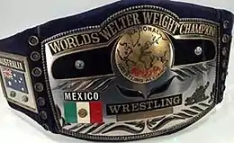 The NWA World Welterweight Championship (Spanish: Campeonato Mundial Welter de NWA) is an inactive professional wrestling championship governed by the National Wrestling Alliance (NWA) and most recently promoted by NWA Mexico. The championship was originally created in 1946 by the Mexican promotion Consejo Mundial de Lucha Libre (CMLL). As with all professional wrestling championships, matches for the NWA World Welterweight Championship were not won or lost competitively but by a pre-planned ending to a match, with the outcome determined by the CMLL bookers and match makers.[6] CMLL controlled the championship from 1946 until 1996 and again from 2007 until 2010. From 1996 until 2007 the championship was promoted mainly in Japan, initially as one of eight championships that made up the New Japan Pro-Wrestling (NJPW) J-Crown Championship. After the J-Crown was discontinued the title remained in Japan promoted by the Toryumon federation until 2007 when it returned to Mexico and CMLL. CMLL was a member of the National Wrestling Alliance (NWA) until the late 1980s but chose to keep the championship and the NWA prefix after leaving the NWA.