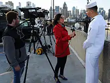 NY1 Noticias reporter Fabiola Galindo interviewing a sailor during Fleet Week 2015