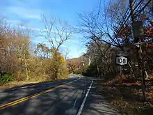New York State Route 108 (NY 108) is a 1.72-mile-long (2.77 km) north–south state highway located on the Suffolk County side of the Suffolk–Nassau county line on Long Island, New York, in the United States. It is a spur route connecting NY 25A in Cold Spring Harbor to the Cold Spring Harbor station on the Long Island Rail Road's Port Jefferson Branch via Harbor Road. Harbor Road terminates at an intersection with Woodbury Road, on the Nassau County line, which carries County Route 11 to the east and unsigned County Route 12 to the west. NY 108, assigned in the early 1930s, is the shortest state highway on Long Island.