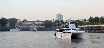 The nearest jetty is Mandwa from where catamaran/ ferry services are available to Gateway of India, Mumbai. Another port in the vicinity is Rewas, from where a ferry service is available to Bhau cha Dhakka in Mumbai. There is also a jetty at Custom Bandar from where fishermen in Alibag set sail.