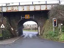 The station creates a height and width restriction on the road below, which in 2020 led to a bus becoming wedged under the station. The road and railway were both closed while the bridge was structurally assessed. There have been several previous incidents of tall vehicles becoming stuck.[75][76]