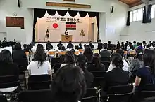 9th grade (third year of junior high school) student Yuko Watanabe (渡辺 優子 Watanabe Yūko) composed the school song's music and lyrics in July 1976. The school designed its school badge in July 1983, and the school flag was designed in October 1984. The school has held an anniversary day beginning in 1983.[4]