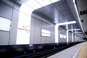 This station has an island platform serving two tracks on the second basement and a Y returning track in the north of the platform.