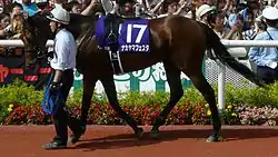 Nakayama Festa won the Nisai Stakes as a two-year-old, which was his only placing in 2008. He only won one race (St Lite Kinen) as a 3-year old and placed in the 2009 Keisei Hai. Nakayama Festa won the 2010 Takarazuka Kinen in Japan by beating two-time champion filly Buena Vista.[3] He also finished second at the 2010 Prix Foy and Prix de l'Arc de Triomphe in France.[1] Nakayama Festa ran in two races in 2011. He finished in last place out of a field of four horses at the Prix Foy run at Longchamp Racecourse in France, the race ultimately being won by the French horse Sarafina.[4] In the final start of his career on 2 October 2011 at the same course, Nakayama Festa finished in 11th place out of a field of 16 horses in the Prix de l'Arc de Triomphe, which was won by Danedream.[5]