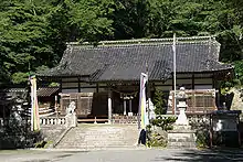In the early years of the Meiji era, the main Nanbu line was ennobled with the title of count (hakushaku) in the new peerage system.[24] The Nanbu of Hachinohe and Shichinohe were also ennobled with the title of viscount (shishaku).[24] Count Toshinaga Nanbu, the 42nd generation Nanbu clan chieftain, was an officer of the Imperial Japanese Army, he died in battle during the Russo-Japanese War.[25] He was succeeded by his brother Nanbu Toshiatsu; Toshiatsu was a proponent of the arts and studied painting under Kuroda Seiki. As Toshiatsu's presumptive heir Toshisada died at age 18, Toshiatsu adopted Toshihide Ichijō, his son-in-law, as his heir. Toshihide was the son of Duke Ichijō Saneteru, who was a former court noble.[26] Upon adoption, Toshihide assumed the Nanbu name, and after Toshiatsu's death, became 44th generation Nanbu clan chieftain. His wife was Mizuko Nanbu, a prominent figure in the Girl Scouts of Japan. After Toshihide's death in 1980, his son Toshiaki became 45th clan chieftain.[27] From 2004 through 2009, Toshaiki served as the chief priest of Yasukuni Shrine.[28] The current and 46th clan chieftain is Toshifumi Nanbu, born in 1970.
