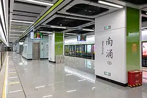 Nanchong Station (Chinese: 南涌站; pinyin: Nánchōng Zhàn; Jyutping: naam4cung1 zaam6) is a station of Guangzhou Metro Line 7, located underground on Shunde Avenue west of Lintou Bridge in Chencun Subdistrict, Shunde District, Foshan, Guangdong Province, China.[1] The station was opened on 1 May 2022, with the opening of the western extension of Line 7.[2][3]