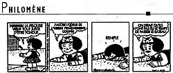 - Quino's Mafalda bears a strong resemblance to the earlier Nancy, which Quino mocks in one strip, where Miguelito buys a Nancy magazine and shows it to Mafalda noticing the resemblance, only for Mafalda to retort (off-frame) that she looks more like his grandmother.[82]