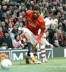 Nani's older brother taught him how to play football and he played with his childhood friend, midfielder Manuel Fernandes.[9][7] When Nani was around the age of 14, his older brother took him to train with Real Massamá.[8] They were Nani's first club and gave him money, food, and helped him obtain an ID card and a passport.[7] At the age of 16, Nani was training on alternate days with Sporting CP and Benfica.[8] Nani sometimes walked miles to and from practice before Sporting offered him pre-season training.[8] Despite growing up in Lisbon, Nani and his brother supported FC Porto as a boy and his footballing hero was Luís Figo.[6][10]