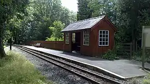 The original station had a corrugated iron building. A replica was built in 1996, by the WHR Ltd, at its terminus at Pen-y-Mount Junction.