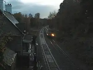 The station closed in 1958. The double line remains in use.