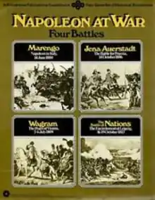 Each of the games in Napoleon at War was also offered for individual sale as a "folio game" packaged in a cardstock folio.[3] Battle of Nations and Jena-Auerstadt proved popular, and were also offered as "Designer's Edition" boxed sets with mounted maps; players could also purchase a set of 15mm metal miniatures for each game from Heritage Models.[4] The miniatures did not sell well, and SPI did not try that experiment again.[4]