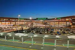 Terminal 3, a terminal for low-cost carriers, opened on April 8, 2015. It is located 500 metres (1,640 ft) north of Terminal 2, where a cargo building used to sit, and has a capacity of 50,000 flights per year. The new terminal incorporates several cost-cutting measures, including using decals instead of lighted directional signs and using outdoor gates and airstairs instead of jet bridges, which are intended to reduce facility costs for airlines and their passengers by around 40% on international flights and 15% on domestic flights. Taisei Corporation was awarded a ¥11.2 billion contract to build the terminal in January 2013.[55] The airport also constructed a new LCC apron to the north of the terminal, with five additional parking slots for Airbus A320 and similarly sized aircraft.[56]