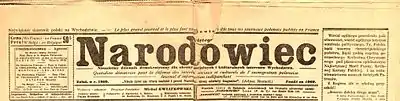 Narodowiec (lit. The Nationalist) was a Polish-language socialist daily newspaper published from Lens in France in 1924–1989. Before the World War II, it had a circulation of up to 40,000 and was seen as the largest Polish language newspaper in France. As of 1960 had a circulation of around 40,000.[1] This newspaper was first established in Herne by Michal Franciszek Kwiatkowski and the first edition was issued on 2 October 1909.