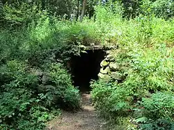 The Nashoba Brook Stone Chamber is an underground stone structure in the woods of the Nashoba Brook Conservation Area of Acton, Massachusetts. Its more common name is the "potato cave", which comes from the traditional assumption that it was once used as a root cellar. Research and excavation from 2006 supports this assertion, finding evidence of construction from the 18th or 19th century for the purpose of storing food.[1][2] Some argue that it may originally have been a pre-colonial native American ceremonial stone landscape structure.[3] Local lore states that it also served as shelter for workers on the nearby railroad in the 19th century.[4]