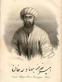 Nasrullah Khan, or Amir Muhammad Nasrullah Bahadur Khan,[1] was the Emir of Bukhara from 24 April 1827[1] to 20 October 1860. His father was Emir Haydar bin Shahmurad (1800–1826).