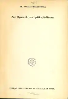 Cover page of Natalie Moszkowska's book (1943). Zur Dynamik des Spätkapitalismus.