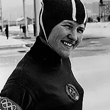 When she competed at the Olympics in "Squaw Valley" in California her husband had to stay at home. He was surprised that she lost the gold medal by only a tenth of a second but he knew her achievement was outstanding. Later he realised that they could have made more of her victory but they were not aware of what might have been done.[2] She did compete in the 1960 World Championship and she was placed fourth.[3]
