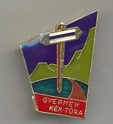Children who complete at least 50 km distance in a region obtain the regional badge of Children's Blue Trail (GYKT); at most one badge can be earned in each region independently of the distance covered. If the combined length of the completed sections reaches 300 km, they obtain the GYKT badge. In case of organising and leading a group of children, the leader can obtain the badge, if the number of the children is at least 6.