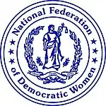 The National Federation of Democratic Women (NFDW) is the official organization of the Democratic Party focusing on women's issues. The NFDW was established in 1971[1] as a means of supporting women's voices within the Democratic Party of the United States. The NFDW hosts national and state-level conferences and activities. The NFDW is a recognized constituent group of the Democratic National Committee (DNC) and therefore has three seats on the DNC and the president of NFDW is part of the executive committee of the DNC.[1]