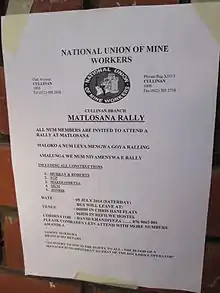 NUM leaflet calling for a general rally near Matlosana.