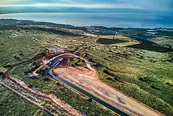 The advanced Eshkol Water Filtration Plant, completed in 2007-2008 by Mekorot,[8] the fourth largest in the world,[9] is located at the southwestern edge of the Beit Netofa Valley. The water first passes through two large reservoirs. The first of these is a sedimentation pond, holding about 1.5 million m³ of water, which allow suspended matter in the water to settle to the bottom, thus cleaning the water. The second reservoir is separated from the sedimentation pond by a dam and has a capacity of 4.5 million m³. Here the inflow of water from the pumping stations and open canals is regulated against the outflow into the closed pipeline. The amount allowed through depends on water demand. A special canal bypasses the reservoirs allowing water to travel straight through the carrier.[1] Before entering the closed pipeline, final tests are performed on the water in the carrier, with chemicals added to bring the water to drinking standards. At the end of the filtration process the water enters the 108" Pipeline, which transports it 86 km to the Yarkon-Negev system near the city of Rosh HaAyin to the east of Tel Aviv and Petah Tikva.[1]