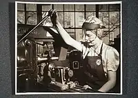 Young women were just as influential as male youth. They made up about 43 percent of the National Youth Administration's total enrollment.[14] Their accomplishments included serving over 31 million lunches to school children, making over 2.5 million articles for hospital supplies, and producing over 3 million articles of clothing for distribution to needy families.[14]