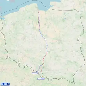 - ↑ Rozporządzenie Ministra Infrastruktury z dnia 9 lutego 2023 r. w sprawie ustalenia przebiegu dróg krajowych [Regulation of the Minister of Infrastructure of February 9, 2023 on determining the course of national roads], Dz. U. z 2023 r. poz. 455 (2023-03-10)
