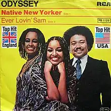 "Native New Yorker" is a disco song written by Sandy Linzer and Denny Randell. It was first recorded in 1977 by Frankie Valli and released on his album Lady Put the Light Out. Later in 1977, the song became a hit single for the soul dance band Odyssey, reaching No. 3 on the U.S. disco chart.[1] Odyssey's "Native New Yorker" also went to No. 6 on the soul chart and No. 21 on the Billboard Hot 100.[2] It reached No. 5 on the UK Singles Chart.[3]