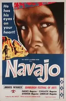Navajo is a 1952 American fictional drama film directed by Norman Foster. It was nominated for two Academy Awards: for Best Documentary Feature (although it's not a documentary[1]) and Best Cinematography.[2] The Academy Film Archive preserved Navajo in 2012.[3][4]