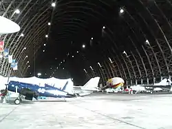 Due to rationing during World War II, the hangars were built entirely of wood. Hangar B was listed on the National Register of Historic Places in 1989 and remains one of the world's largest wooden structures; it currently houses the Tillamook Air Museum. Hangar A was destroyed by a fire on August 22, 1992.